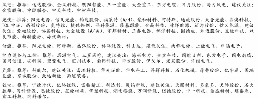 (1)绿醇:嘉泽新能、电投绿能、 中国天楹、金风科技、中集安瑞科、佛燃能源等;(2)制氢设备:华电科工、双良节能、国富氢能、华光环能等;(3)燃料电池车:亿华通、国富氢能、重塑能源、科威尔、 雄韬股份等。