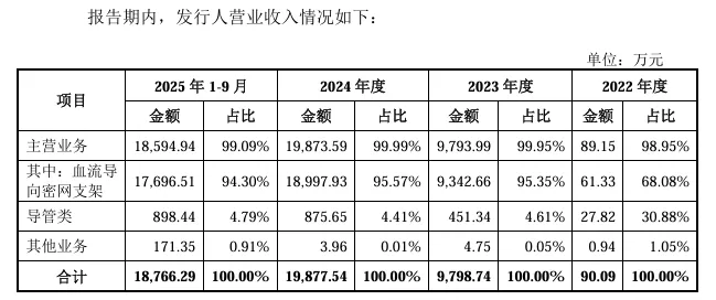 这一转变的核心,是核心产品的商业化落地加速——血流导向密网支架作为收入主力,2023 年起贡献超 95% 的营收,市场份额持续提升,同时毛利率稳定在 85% 以上,具备较强的盈利能力。