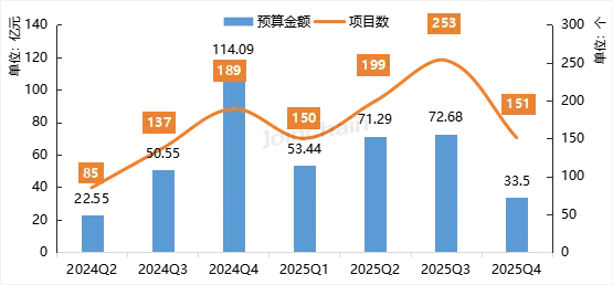 截至2025年底,我国医疗领域设备更新拟建项目数量共计2197个,其中1152个项目披露了预算金额,占比约52.4%,披露总预算金额约946亿元,单个项目平均预算金额约8210万元。