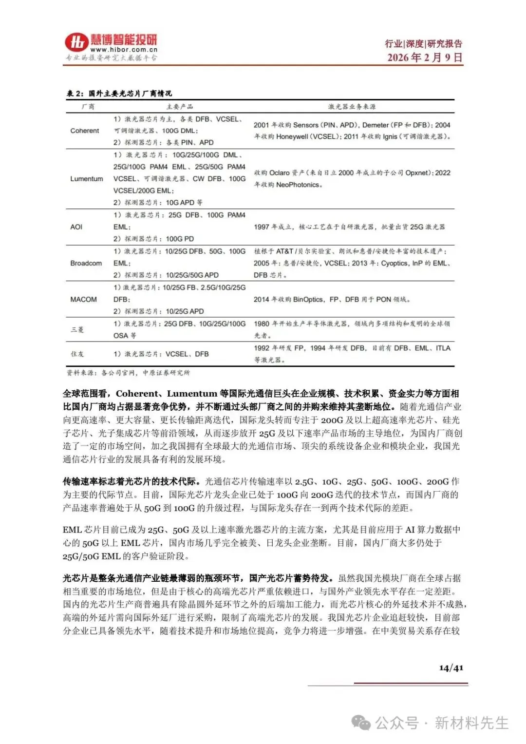 - 演进主线:一是高速光模块商用,1.6T/3.2T 产品加速落地,硅光、CPO 等前沿技术突破;二是国产替代深化,国内从封装制造向光芯片、电芯片等高价值环节攀升。