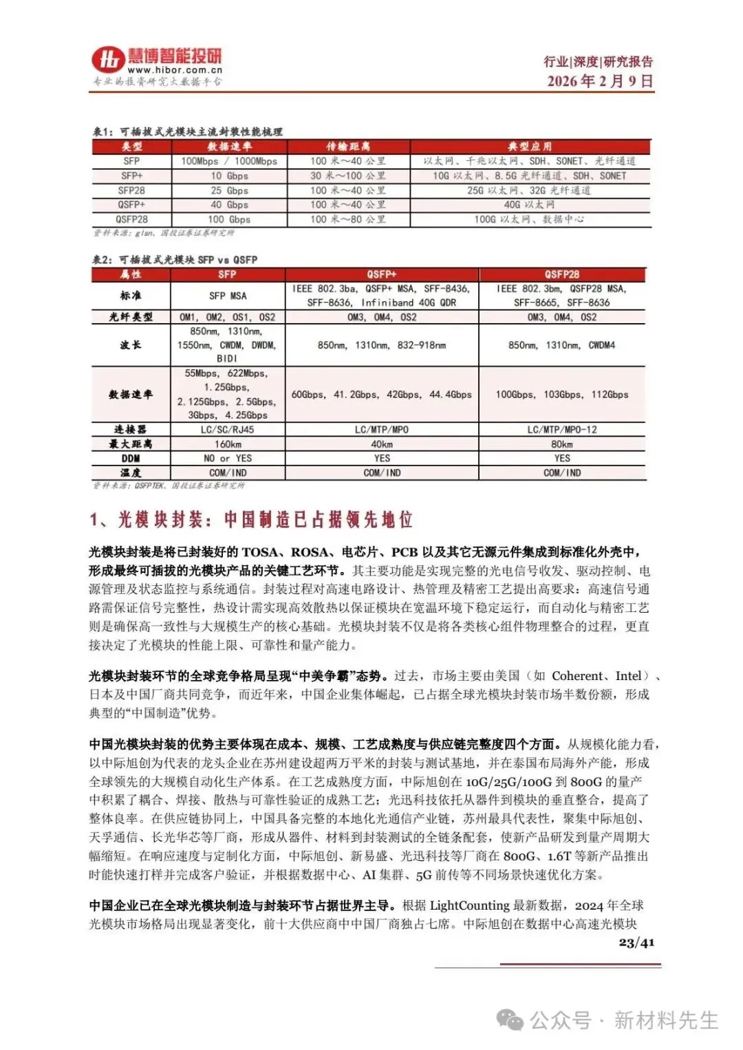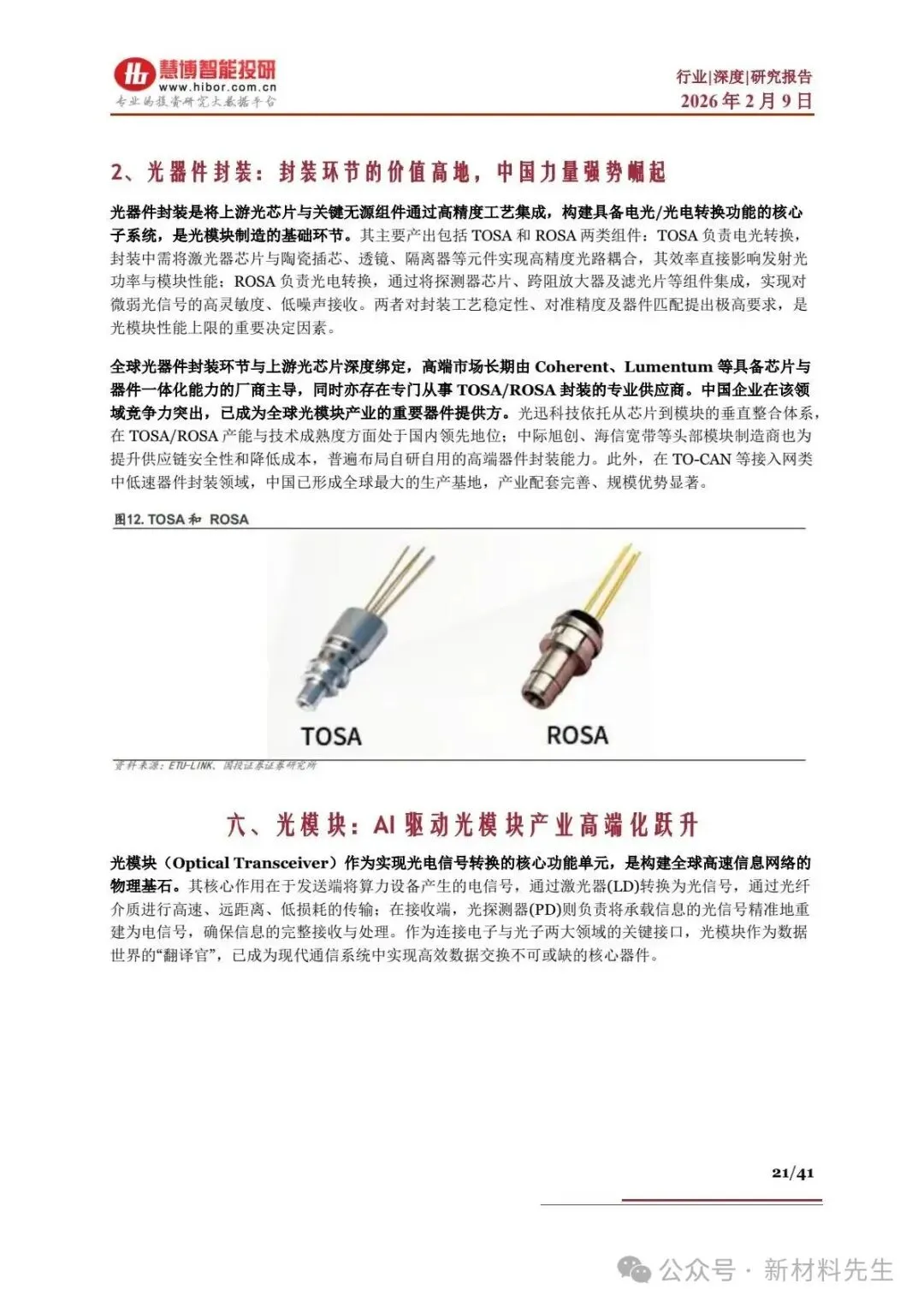 - 光组件:分有源(TOSA/ROSA、激光器)和无源(光隔离器、波分复用器),中国是全球最大生产地,龙头为天孚通信、光迅科技。