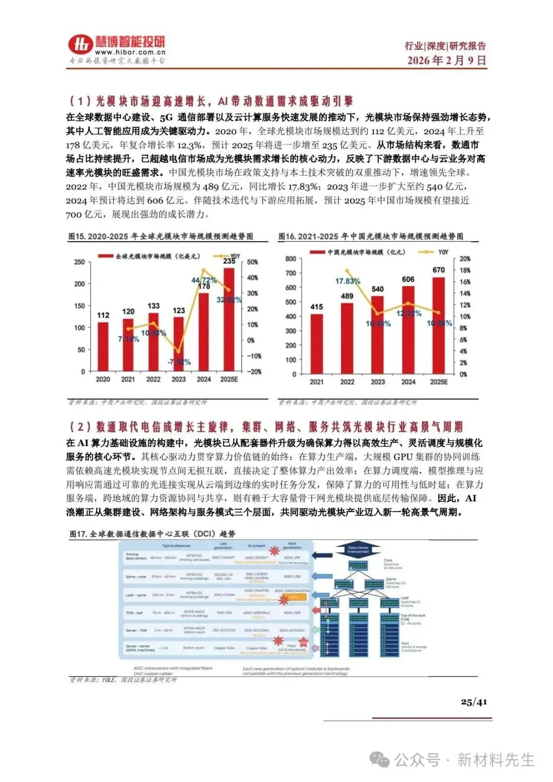 - 应用:适用于长距离 DCI 互联,400G/800G 相干光模块成为数据中心互联核心,2025 年相干模块规模达 250 万支,2022-2025 年 400G 相干光模块 CAGR 超 40%。