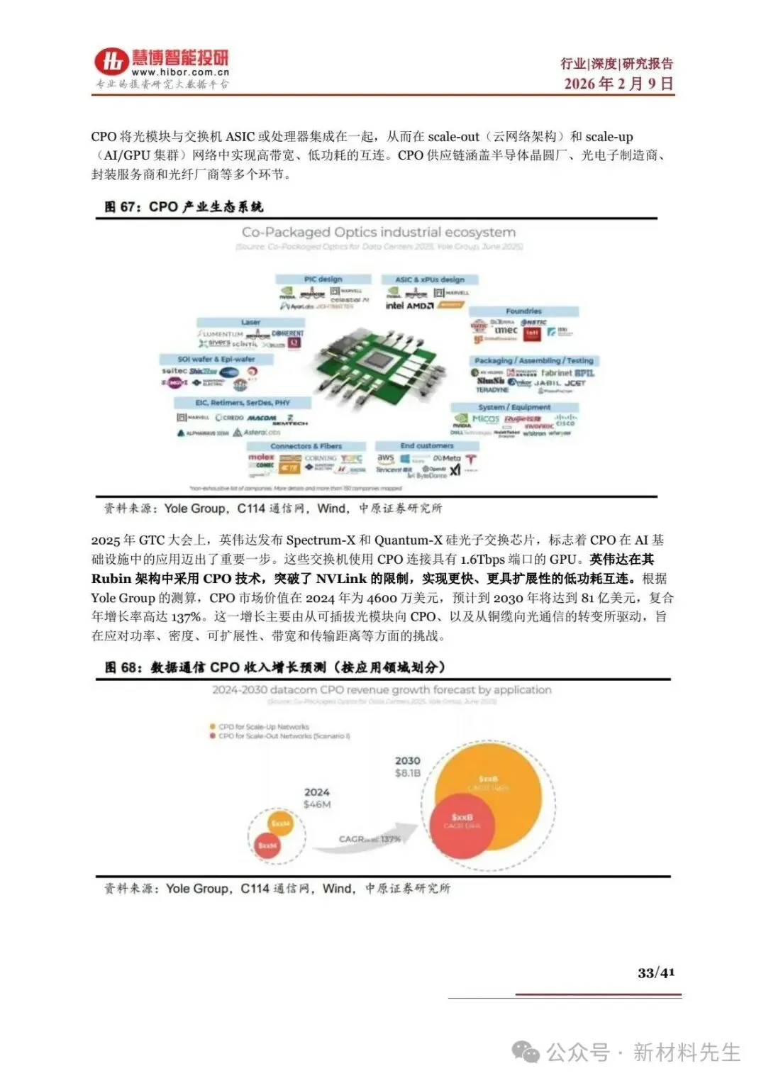 - 市场:2024 年市场规模 4600 万美元,2024-2030 年 CAGR137%,2030 年达 81 亿美元,英伟达 Rubin 架构推动 CPO 商用。