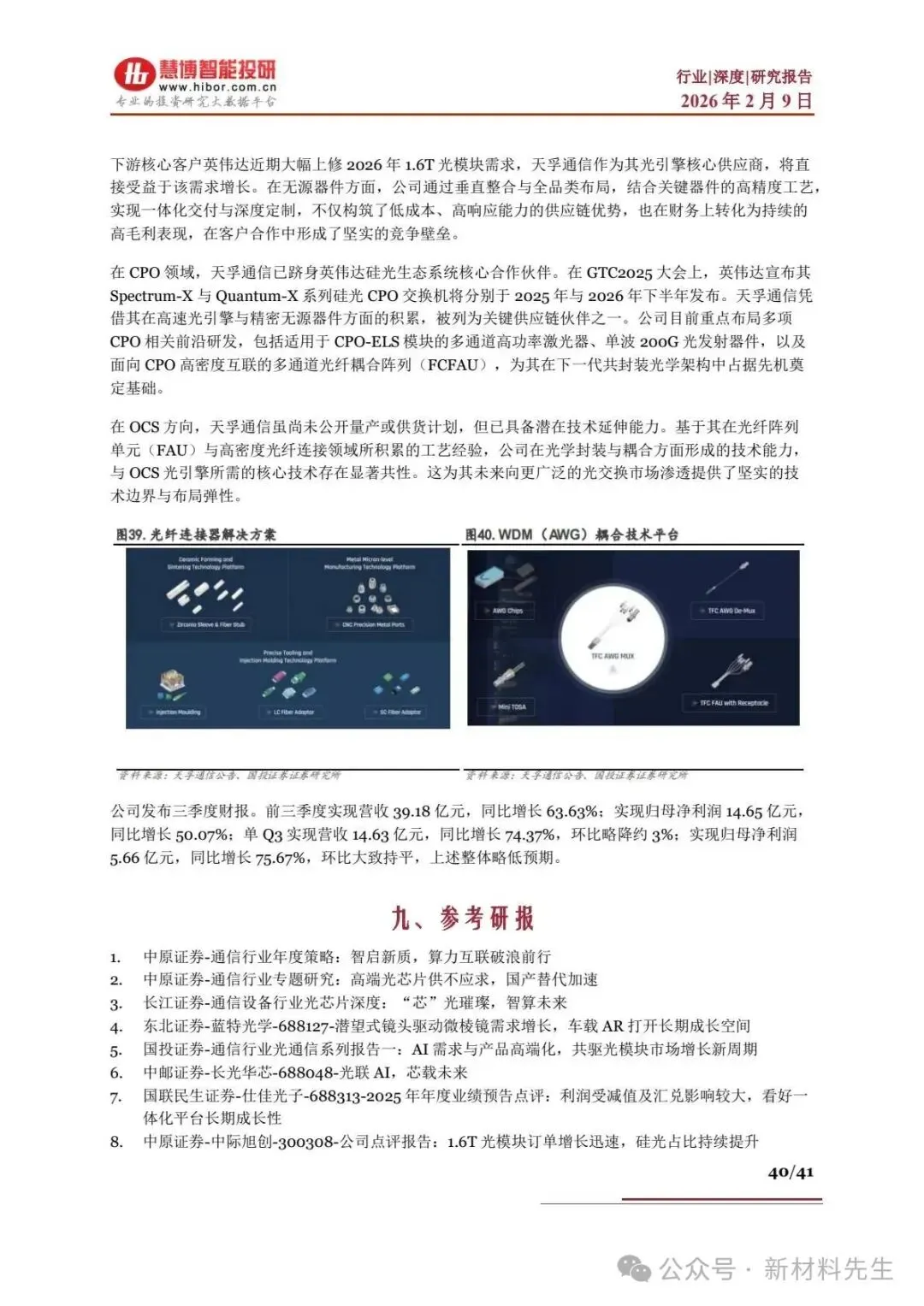 - 天孚通信:无源器件全球领先,为英伟达 CPO 核心供应商,高速光引擎为 1.6T 光模块核心部件,25 前三季度营收39.18 亿元,同比 + 63.63%。