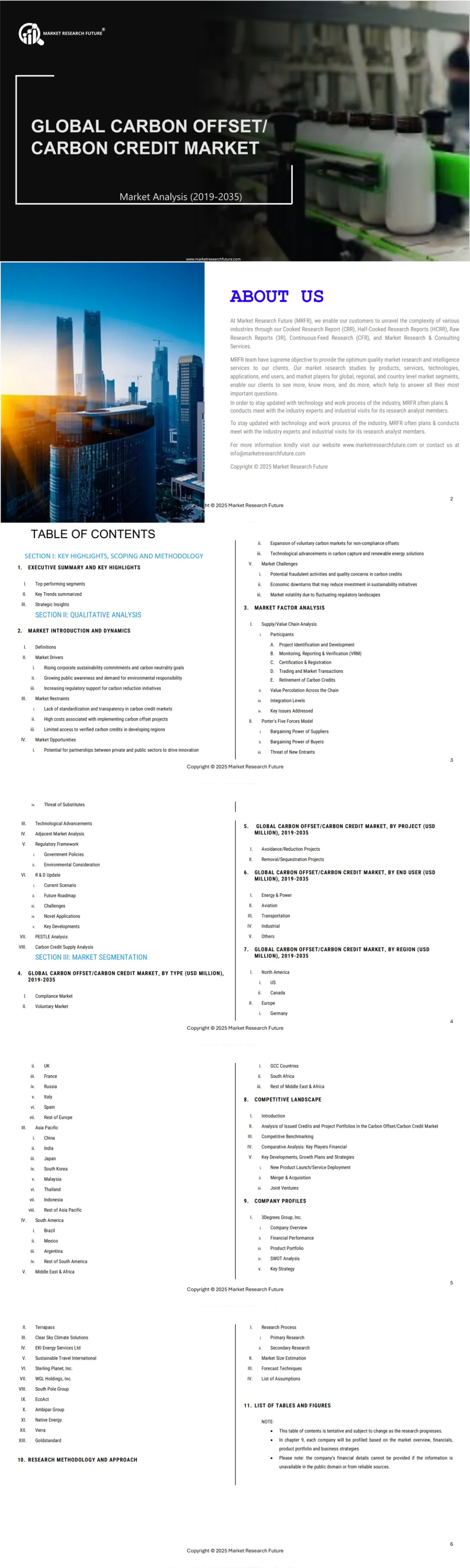 这份报告是全球碳抵消/碳信用市场(2019–2035)的完整研究,核心结论、规模、结构、驱动与约束、竞争格局可总结为以下要点: