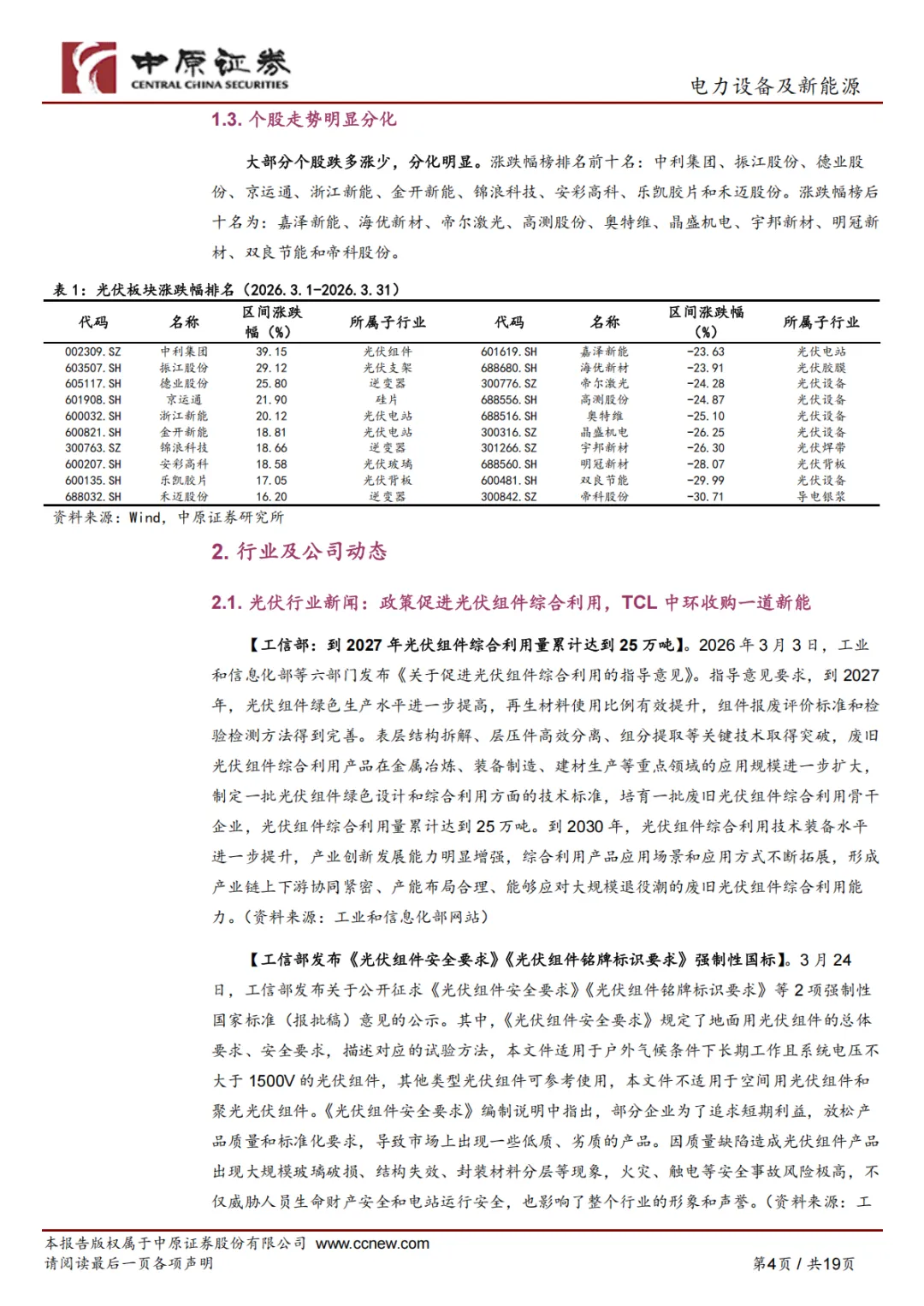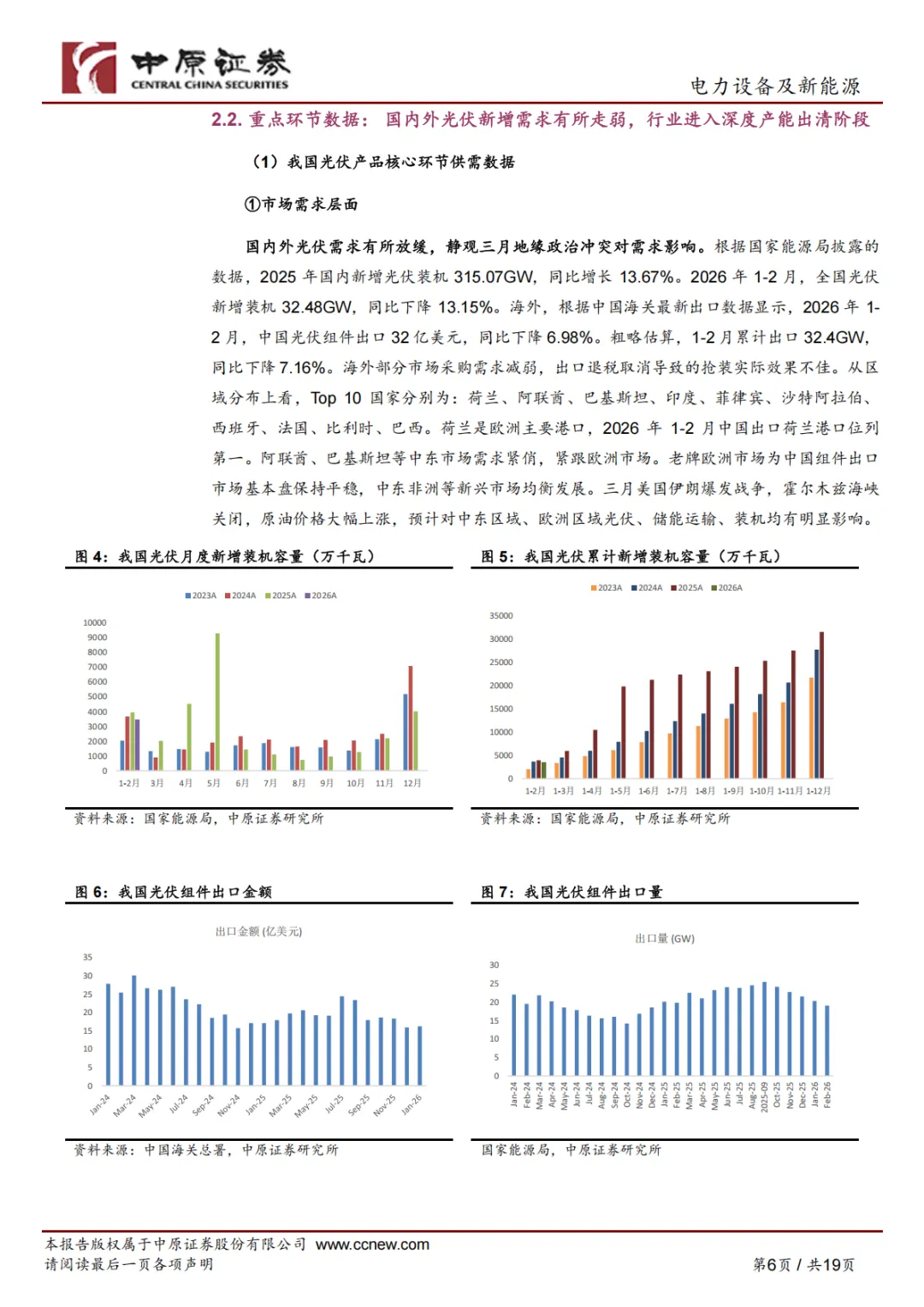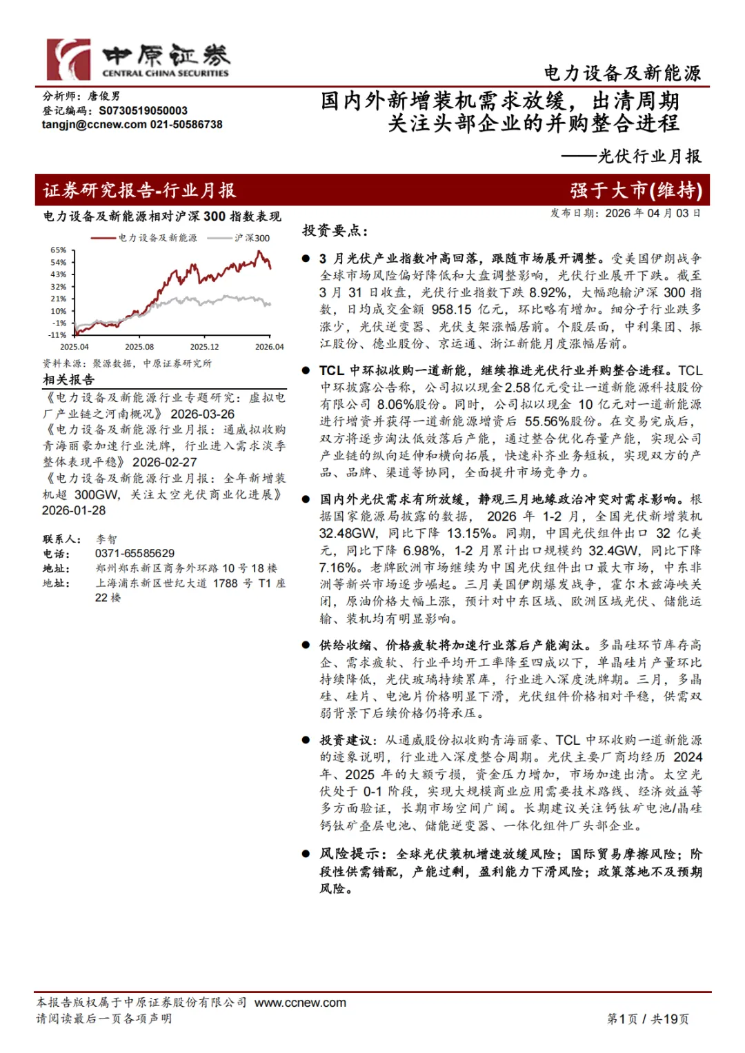 『研报』光伏行业月报:国内外新增装机需求放缓,出清周期关注头部企业的并购整合进程