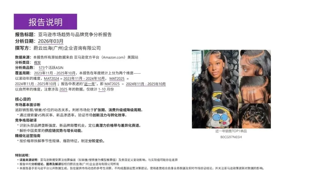 这份报告通过详尽的数据分析与深度洞察,为跨境电商提供了关于假发品类在美国亚马逊市场的全面指南,有助于企业把握市场动态,制定有效的运营策略。